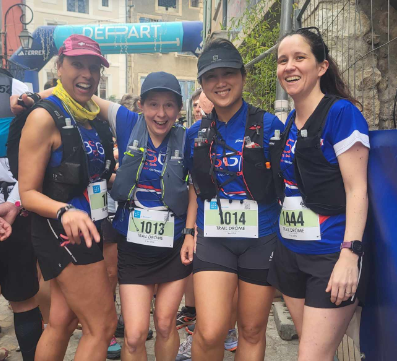 Sur ce format court (21 Km – 900D+), les Skytrails Runners (Daniella, Aline, Adeline, Léa, Elvire, Céline, Nadia et Jean-Fabien) ont pris le départ à 10h00.