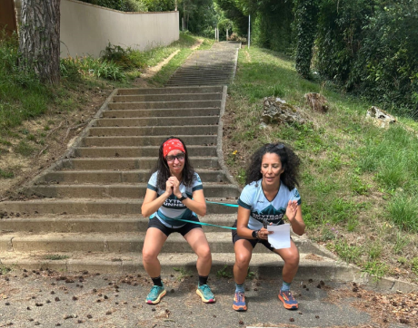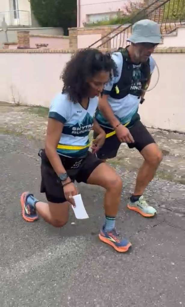 Pour cette première partie, les SkyTrail Runners ont dû enchaîner par binôme une série d’exercices de renforcement musculaire : squats, longue montée d’escaliers, burpees, travail d’équilibre et de mobilité, fentes sous forme de circuit … etc